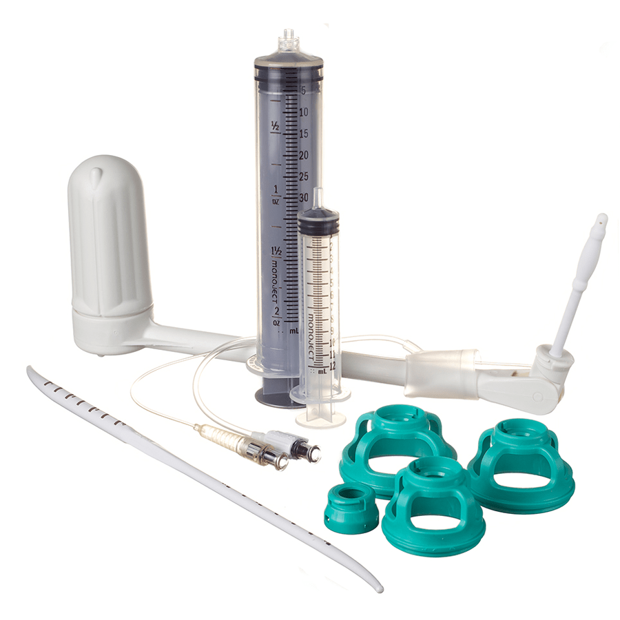 The ClearView TOTAL has the same great features as the ClearView with the addition of a pre-attached occluder balloon as well as three different sizes of colpotomy cups, conveniently packaged in a sterile inner tray which can be removed and placed aside until use. The colpotomy cups were designed for improved visibility during insertion and are colored for easy identification when making the colpotomy incision. The occluder balloon serves as a seal, preventing the loss of the pneumoperitoneum once the colpotomy incision has been made. It is filled with 60-120ml of sterile saline using the included 60ml syringe.
